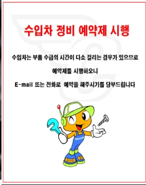 수입차는 부품수급의 시간이 다소 걸리는 경우가 있으므로 예약제를 시행하오니